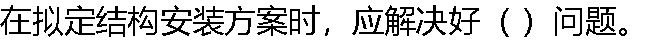 | A:做好安装前的准备工作 B:合理选择起重机械 C:拟定构件安装工艺及结构安装方法 D:确定起重机开行路线与结构平面布置 |