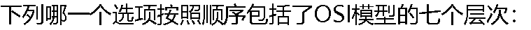 | A:物理层 数据链路层 网络层 传输层 会话层 表示层 应用层 B:网络层 传输层 物理层 数据链路层 会话层 表示层 应用层 C:物理层 数据链路层 传输层 网络层 会话层 表示层 应用层 D:物理层 数据链路层 会话层 网络层 传输层 表示层 应用层 |