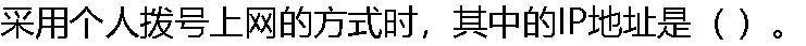 | A:由个人在TCP/IP设置时随意设定的。 B:由ISP给个人入网用户分配的永久地址。 C:由Internet服务商自动分配。 D:个人上网无须IP地址。 |