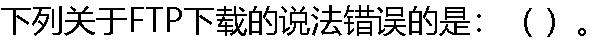| A:FTP采用C/S工作方式,由用户提出请求,FTP服务器做出回应。 B:使用IE浏览器进行FTP下载前的身份验证时,可以使用匿名登陆的方式。 C:FTP只适用于文件的上传和下载。 D:FTP的客户机和服务器直接采用TCP相连,保证了数据传输的可靠性和独占性。 |