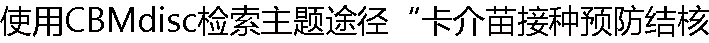 | A:卡介苗/治疗应用 and 结核/预防与控制 B:卡介苗预防 and 结核 C:卡介苗/预防 and 结核/治疗 D:卡介苗 and 预防 and 结核 |