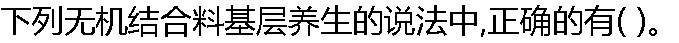| A:每一段碾压完成并经压实度检查合格后,应立即开始养生 B:一级公路基层的养生期不宜少于7d C:水泥稳定土基层不能用沥青乳液进行养生 D:二灰基层宜采用泡水养生法,养生期应为7d E:石灰稳定土养生期间,不应过湿或忽干忽湿 |