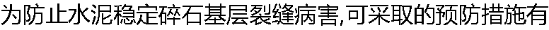 | A:在保证强度的情况下,适当增加水泥稳定碎石混合料的水泥用量 B:碎石级配应接近要求级配范围的中值 C:严格控制集料中粘土含量 D:养护结束后应及时铺筑下封层 E:宜在气温较低的季节组织施工 |