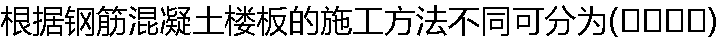 | A:?现浇式、梁板式、板式?????????????? B:?板式、装配整体式、梁板式? C:?装配式、装配整体式、现浇式???????? D:?装配整体式、梁板式、板式?? |