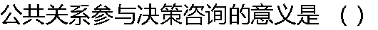 | A:让公众利益贯穿于组织决策过程的始终 B:促成国际间的协调和合作 C:以避免组织决策只顾自身利益的片面性 D:决策咨询这一职责是组织其他管理活动不可取代的 E:对组织的潜在影响进行分析 |