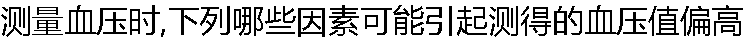 | A:袖带过宽 B:膀胱充盈 C:手臂位置低与心脏水平 D:吸烟 E:进食 |
