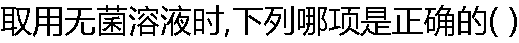 | A:必须核对溶液 B:手不可触及瓶口及盖的内面 C:检查溶液有无浑浊 D:倾倒溶液时,标签朝上 E:必要时,可将无菌棉签直接伸入瓶内蘸取无菌液 |