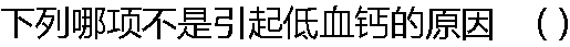 | A:甲状旁腺机能减退 B:维生素D缺乏 C:大量输入柠檬酸盐抗凝血 D:多发性骨髓瘤 E:低蛋白血症 |