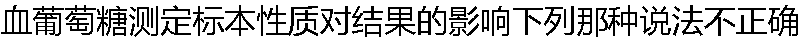 | A:血葡萄糖定量全血及血浆标本均可用,两者结果一致 B:动脉血葡萄糖含量高于静脉血,尤以饭后明显 C:红细胞中葡萄糖浓度低于血浆浓度 D:毛细血管血葡萄糖浓度高于静脉血 E:血葡萄糖耐量试验不宜用毛细血管血标本进行测定 |
