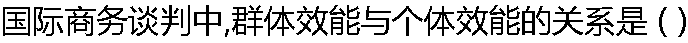 | A:群体效能大于个体效能的累加 B:群体效能小于个体效能的累加 C:群体效能等于个体效能的累加 D:群体效能有时大于个体效能的简单累加,有时小于个体效能的累加 |