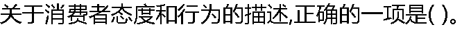 | A:消费者的购买行为必然要受到态度的直接支配 B:消费者态度与购买行为之间的关系是因果关系 C:消费者态度通过影响消费者的购买意向,进而影响购买行为 D:消费者的态度和行为总是一致的 |