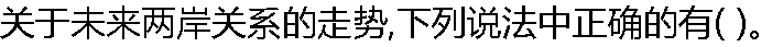 | A: 两岸长期存在的政治分歧问题终归要逐步解决 B: 我们坚持“和平统一、一国两制”基本方针 C: 突出强调两岸关系和平发展是促进两岸共同发展、造福两岸同胞的正确道路 D: 中国人民有坚定的意志、充分的信心、足够的能力挫败一切分裂活动,维护国家主权和领土完整 |