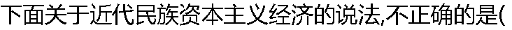 | A:在近代国民经济中所占比重很小,始终没有成为中国社会经济的主要形式 B:在民族工业中,工业资本所占比重较小,商业资本与金融资本所占的比重大 C:在工业结构中,重工业占有相当的比重 D:民族工业规模比较小,分散经营,劳动生产率比较低 |