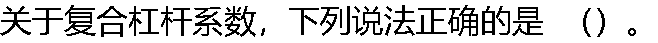 | A:复合杠杆系数等于经营杠杆系数和财务杠杆系数之和 B:该系数等于普通股每股利润变动率与息税前利润变动率之间的比率 C:该系数反映产销量变动对普通股每股利润的影响 D:复合杠杆系数越大,企业风险越小 |