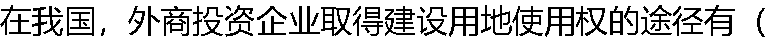 | A:举办合营、合作企业,由中方以土地使用权作价入股 B:以合资企业名义向当地县级以上人民政府提出申请,缴纳土地使用费 C:外商独资企业通过土地使用权出让或的土地使用权; D:合资企业通过土地使用权转让或者租赁或的土地使用权; |