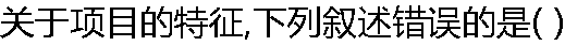 | A:通常是为了一项新的任务才组织项目 B:项目可利用资源预先要有明确的预算 C:项目有严格、公开的时间界限 D:项目组大都以垂直方式来组织。 |