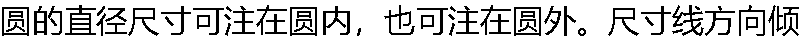 斜,用箭头作为起止符号,箭头指着圆周,箭头应画的细而长,长度约为: