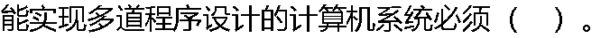 | A:具有中央处理器外围设备的并行工作能力 B:提供多个中央处理器 C:采用“存储保护”技术 D:能进行“程序浮动” E:能对各种资源进行合理的分配和调度 |