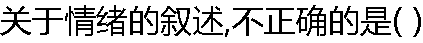 | A:人不能有任何情绪 B:情绪是消极的 C:情绪是无法调控的 D:不良情绪会影响人的正常水平的发挥。 |