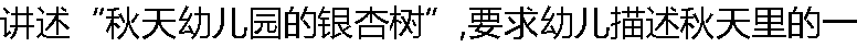 棵银杏树,要具体说出树叶的颜色、形状和小朋友拣银杏叶可以做什么?等等,这种讲述形式是( )。 |