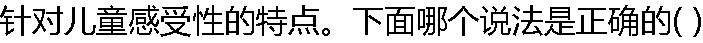 | A:孩子幼小的时候,不随别人末了的一句话或者一个字说 B:年长的儿童比年幼的儿童暗示感受性来得强 C:年长的女孩比年长的男孩暗示感受性来得强 D:年幼的女孩比年幼的男孩暗示感受性来得强 |