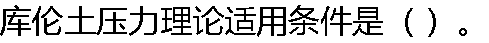 | A:墙后填土是无粘性土 B: 墙背垂直 C:当墙身向前或向后移动时,产生处于极限平衡状态的滑动楔体,滑动面是通过墙踵的平面 D:滑动土楔视为刚体 |