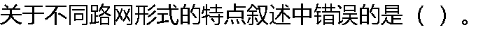 | A:方格网道路容易形成不必要的穿越中心区的交通 B:方格网道路的非直线系数大 C:环形放射式道路不容易将外围交通迅速引入市中心区 D:环形放射式道路容易使城市呈同心圆式不断向外扩张 |