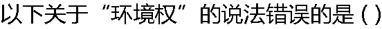 | A:我国公民参与环境与资源管理是依据现行法律中明确规定了的环境权 B:环境权是指公民都有在良好环境下生活的权利 C:环境权是公民参与环境与资源管理的各种权利的基础 D:环境权是公民应当拥有的最基本的权利之一 |