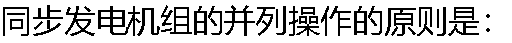 | A: 并列操作时间应尽量短 B: 并列断路器合闸时,对待并发电机组的冲击应尽量小 C: 机组并入系统后应能够迅速进入同步运行状态 |
