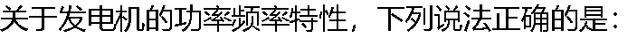 | A: 发电机的功率和频率特性指由于频率变化而引起发电机输出功率变化的关系 B: 当仅考虑调速器的作用时,发电机功率频率特性可以用一条倾斜的直线来表示 C: 该特性所对应的曲线的倾斜程度用功率调差系数来表征 |