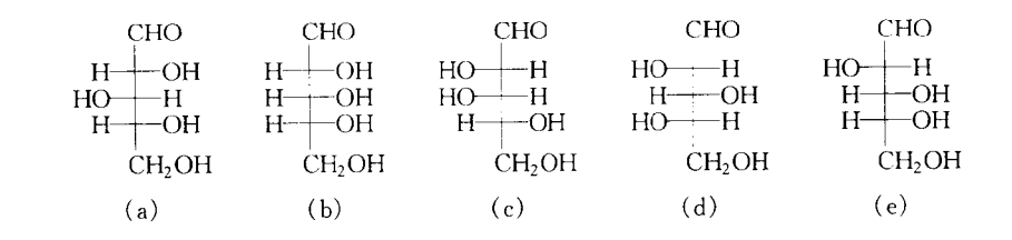 下列五个戊醛糖的结构中,互为对映体的是 ( )