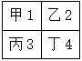 四个小朋友做换位的游戏(他们分别为甲、乙、丙、丁),开始按甲、乙、丙、丁的顺序分别坐在1、2、3、4号位置上(如图),第一次他们上下两排换,第二次左右两排换,第三次又上下换,第四次又左右换,这样交换下去,请你想一想,第十次换位后,丙在( )号位置上。
