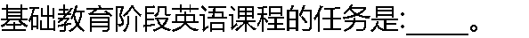 | A:激发和培养学生学习英语的兴趣 B:培养学生的观察、记忆、思维、想像能力和创新精神 C:为培养高素质的外语人才打下良好的基础 D:使学生形成一定的综合语言运用能力 |