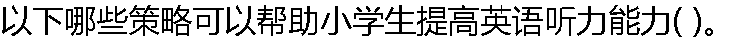 | A:经常播放英语歌曲和故事 B:让学生观看英语动画片和电影 C:进行听力训练和练习 D:让学生进行英语对话 E:采用多媒体教学资源 |