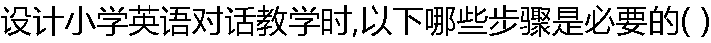 | A:引入新的对话话题 B:呈现和练习对话 C:让学生进行对话创作 D:进行对话表演 E:对对话进行评价和反馈 |