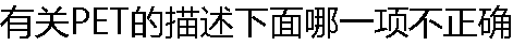 | A:PET是正电子发射型计算机断层显像仪的英文缩写 B:它是核医学显像最先进的仪器设备 C:临床上主要用于肿瘤显像 D:显像原理是核素发射的正电子与体内负电子作用后产生湮灭辐射发出一对能量相等方向相反的511keVγ光子经符合探测技术而被多排探测器探测到,数据经计算机处理和图像重建后获得不同断面的断层影像 E:常用放射性核素99Tcm及其标记化合物作为正电子药物 |