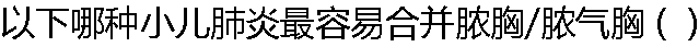 | A: 呼吸道合胞病毒肺炎 B: 腺病毒肺炎 C: 金黄色葡萄球菌肺炎 D: 支原体肺炎 |
