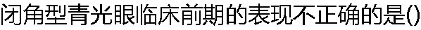 | A:房角关闭 B:眼压升高 C:视野缺损 D:瞳孔散大 E:视力下降 |