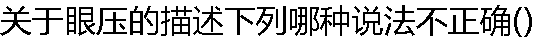 | A:是眼球内容物作用于眼球壁的压力 B:正常人双眼眼压差一般不大于5mmHg C:正常人24小时眼压波动范围不大于8mmHg D:正常人眼压平均值为16mmHg,标准差3mmHg E:正常人的眼压范围绝对是在11~21mmHg之间 |