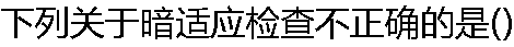 | A:暗适应过程即视紫红质复原过程 B:可对夜盲进行量化评价 C:属主觉检查法 D:检查方法有对比法和暗适应计 E:表明视锥细胞功能状态 |