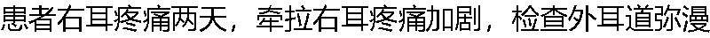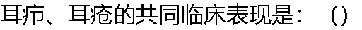 | A:局限红肿,突起如椒目 B:外耳道弥漫性红肿 C:耳部疼痛,耳郭牵拉痛 D:外耳道有白色浊物堆积 E:耳痒耳痛,溃疡渗液 |