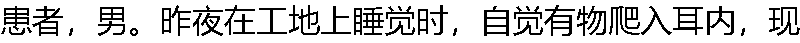 | A:用镊子挟取 B:用冲洗法冲出 C:用油剂滴耳 D:全麻 |