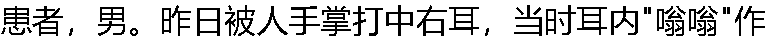 | A:患耳疼痛的轻重 B:患耳听力障碍的轻重 C:患耳鼓膜有无穿孔 D:患耳鼓膜有无充血 |