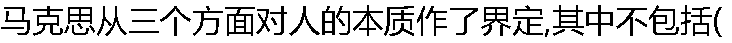 | A:劳动是人的本质 B:人的需要即人的本质 C:人的社会属性决定人的本质 D:人的本质是一切社会关系的总和 |