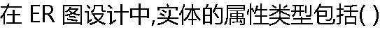 | A: 关联属性 B: 简单属性 C: 主键属性 D: 复合属性 E: 派生属性 |