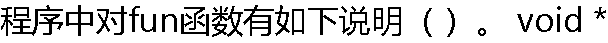 | A: fun函数无返回值 B: fun函数的返回值可以是任意的数据类型 C:fun函数的返回值是无值型的指针类型 D: 指针fun指向一个函数,该函数无返回值 |