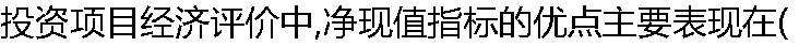 | A:考虑了资金时间价值,对项目进行动态分析 B:考查了项目在整个寿命期内的经济状况 C:直接以货币额表示项目投资的收益性大小,经济意义明确直观 D:便于投资者衡量建设项目承担风险的 |