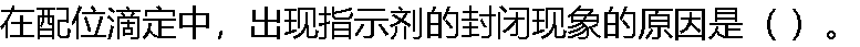 | A:指示剂与金属离子生成的络合物不稳定 B:被测溶液的酸度过高 C:指示剂与金属离子生成的络合物稳定性大于MY的稳定性 D:指示剂与金属离子生成的络合物稳定性小于MY的稳定性 |