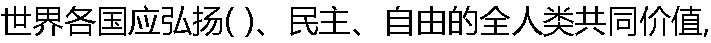 建设,践行( )的全球治理观,坚持真正的多边主义,推进国际关系民主化,推动全球治理朝着更加公正合理的方向发展。 |