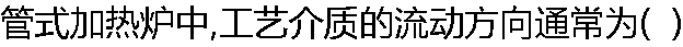 | A: 从对流室进入,辐射室流出 B: 从辐射室进入,对流室流出 C: 任意方向 D: 与烟气流动方向相同 |